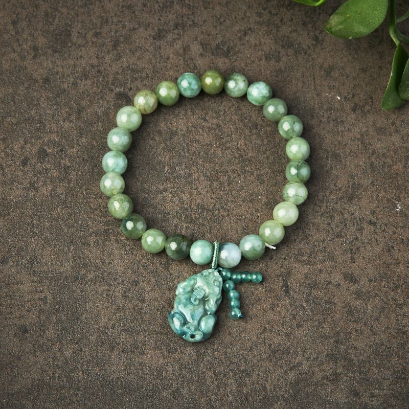 Grünes Jade Armband mit Pixiu - Für Wohlstand & Ruhe